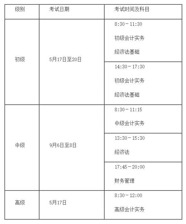 4.2025年5月17日至20日,组织初级会计资格考试,5月17日组织高级会计资格考试。